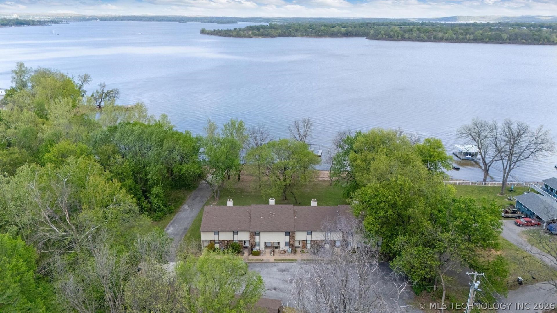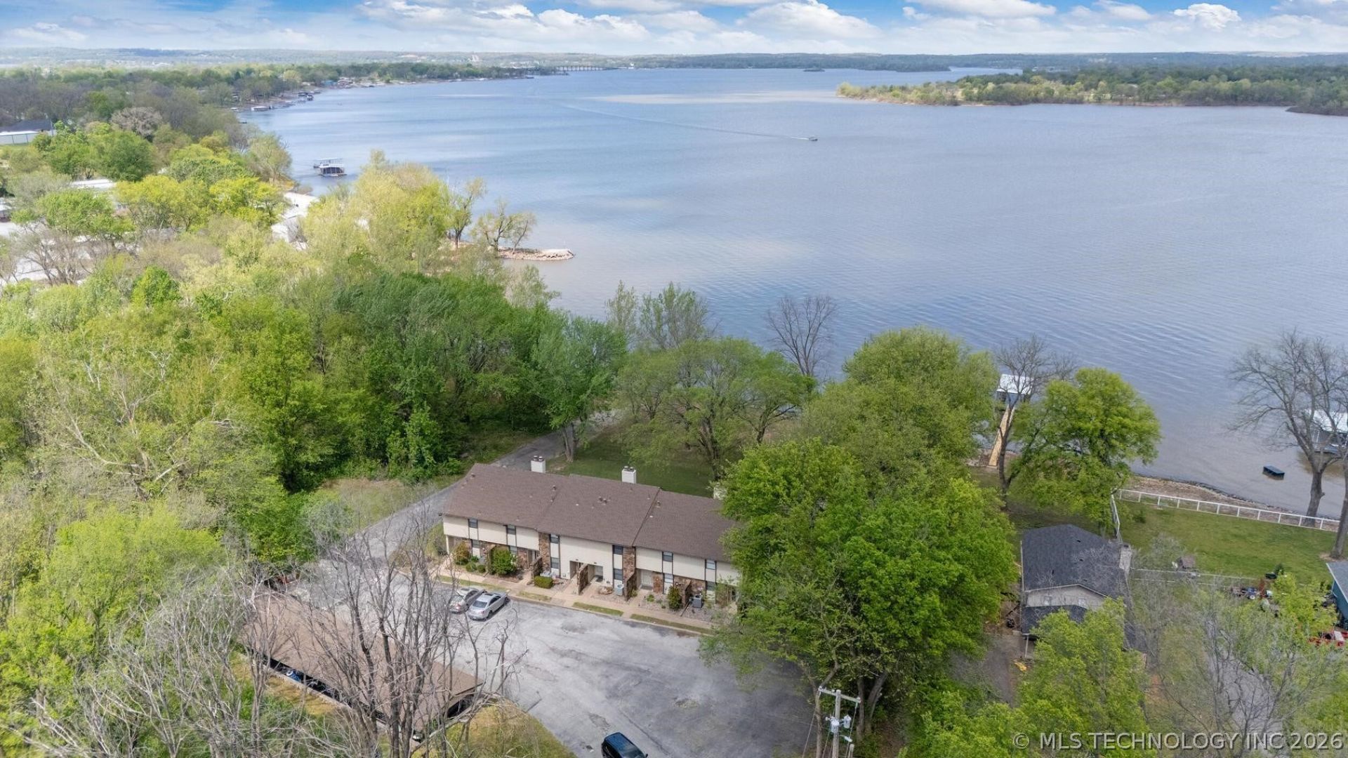 Lake days just got easy. Move-in ready and selling furnished, this lakefront townhome on Wolf Creek is set up so you can start enjoying it right away. Just bring your toothbrush. The main level features a comfortable living area, dining space, and a kitchen with bar top seating that's great for gathering. There's also a half bath for guests and easy access out to the back deck with peaceful lake views. Upstairs offers two bedrooms with a shared full bathroom, giving a simple and practical layout that works well for everyday use or weekend stays. Step outside and enjoy the back deck overlooking the water, along with a very gentle slope to the shoreline that makes it easy to spend time by the lake. The property includes access to a 2-slip dock with wet steps and a boat ramp on site for owners. Located on Wolf Creek, you're just a few miles from the city boat ramps and the Wolf Creek Expo Center, making it easy to get on the water or enjoy local events. Additional features include 1 covered parking space and 2 additional spots. The HOA is 100 per month and covers lawn care, dock maintenance, and exterior insurance, making for low-maintenance lake living.